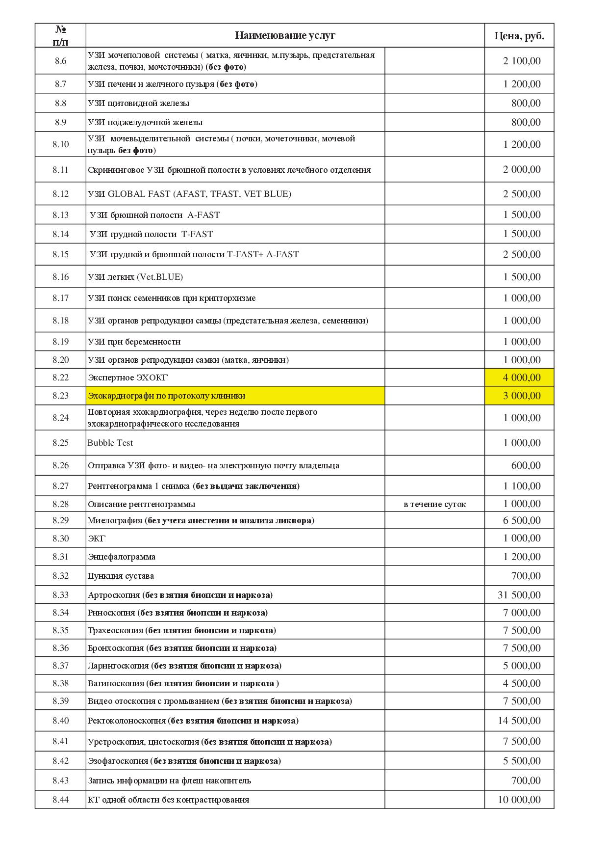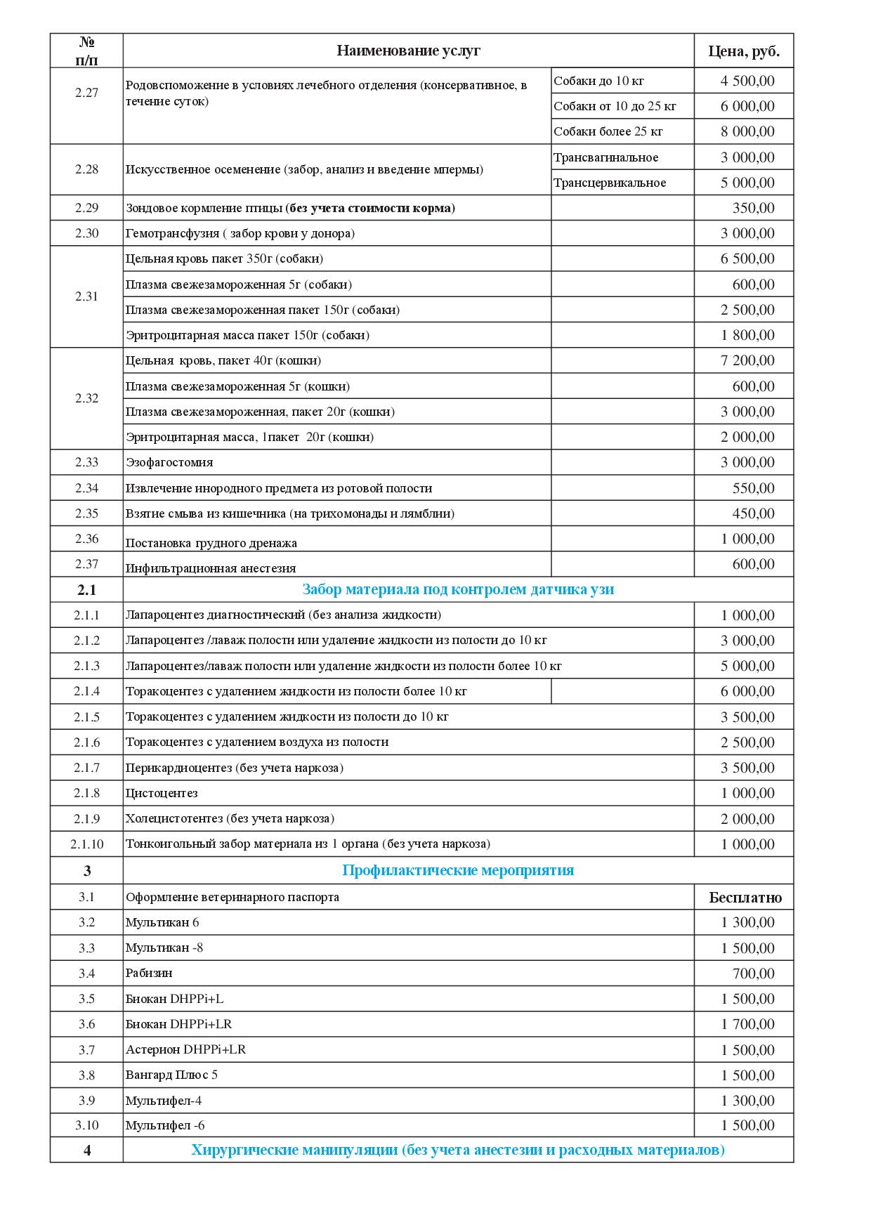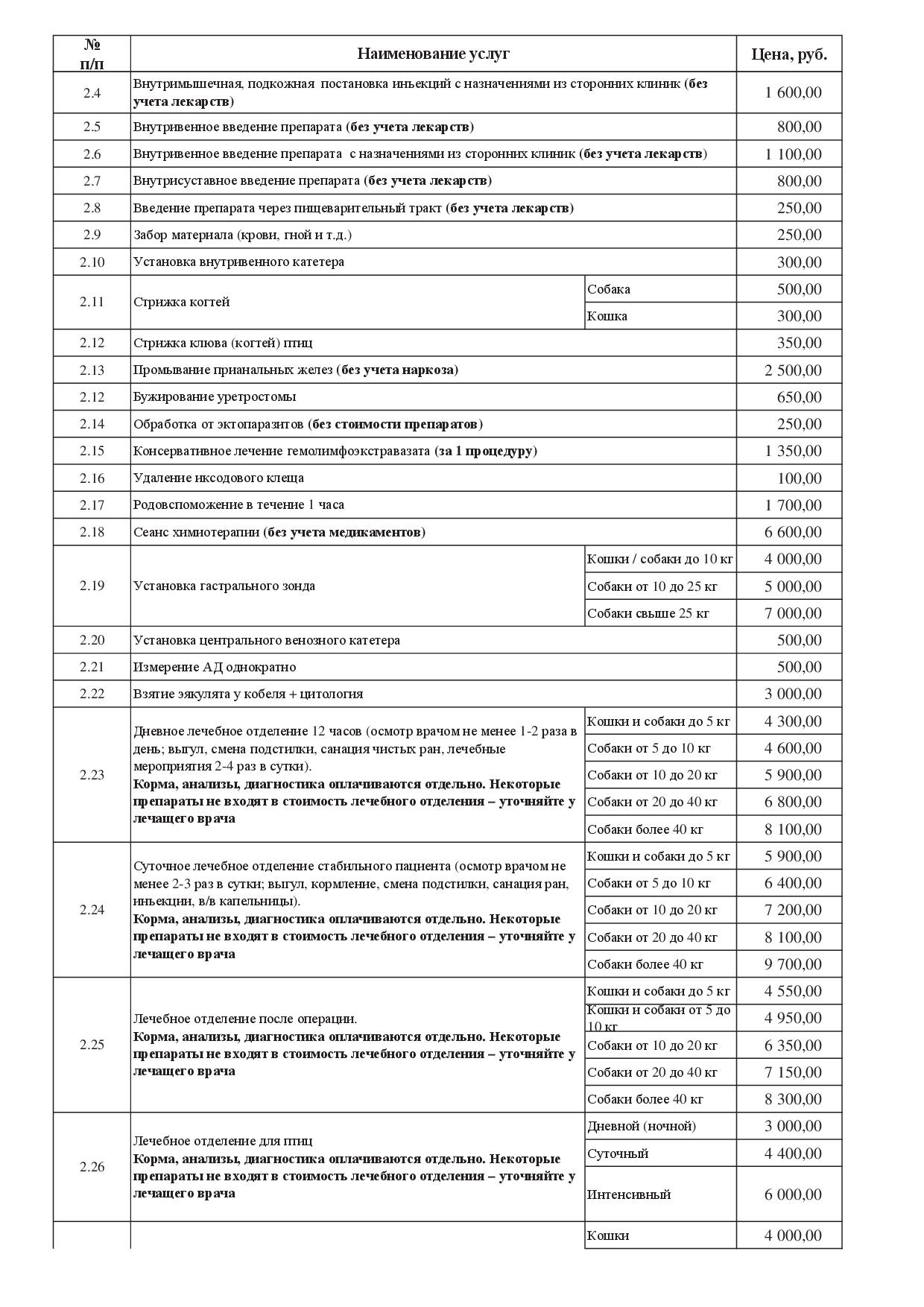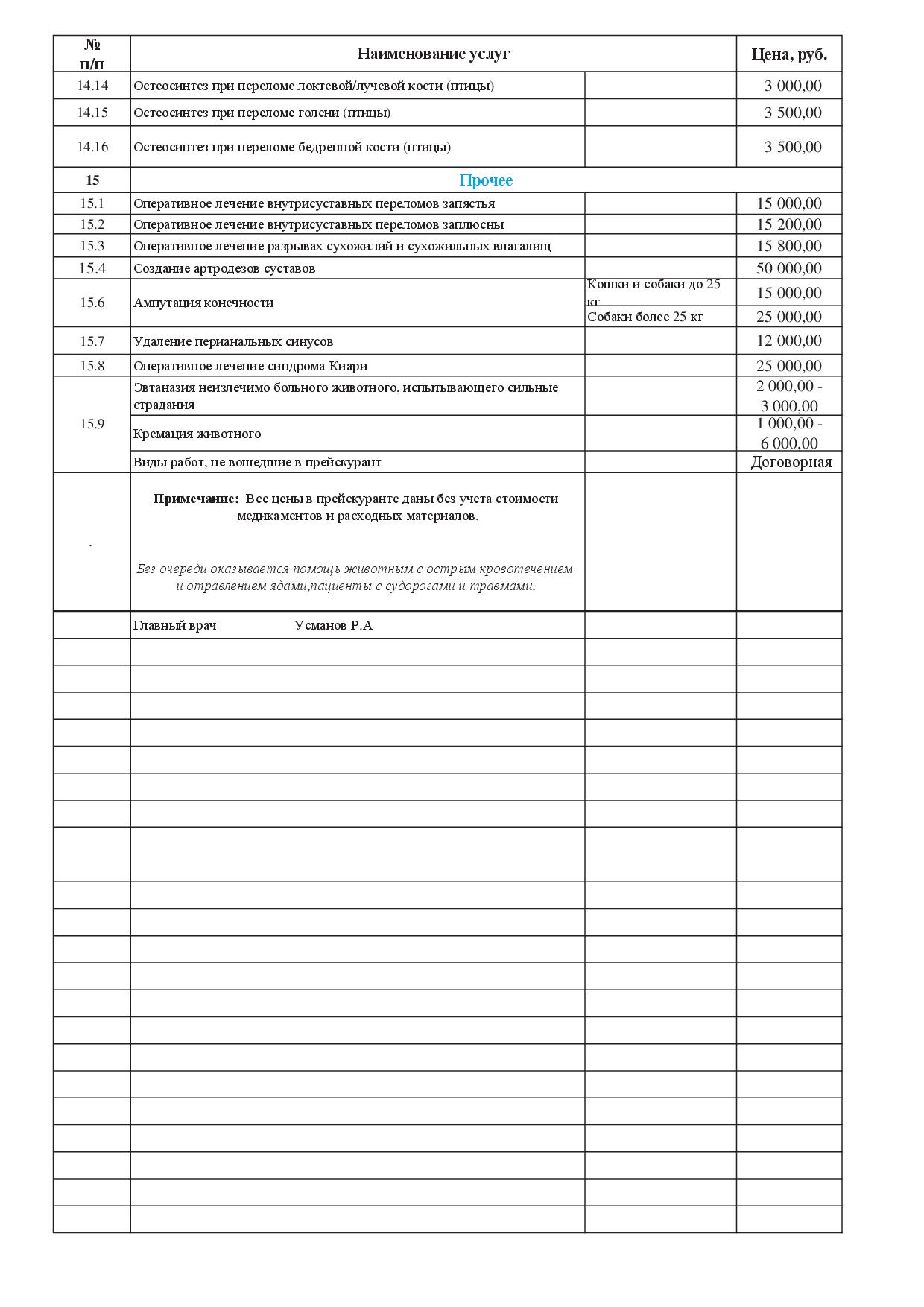 Примечание: Все цены в прейскуранте даны без учета стоимости медикаментов и расходных материалов.